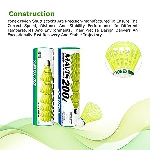 Yonex Mavis 200i Nylon Shuttle Cock, Pack of 6 (Yellow)
